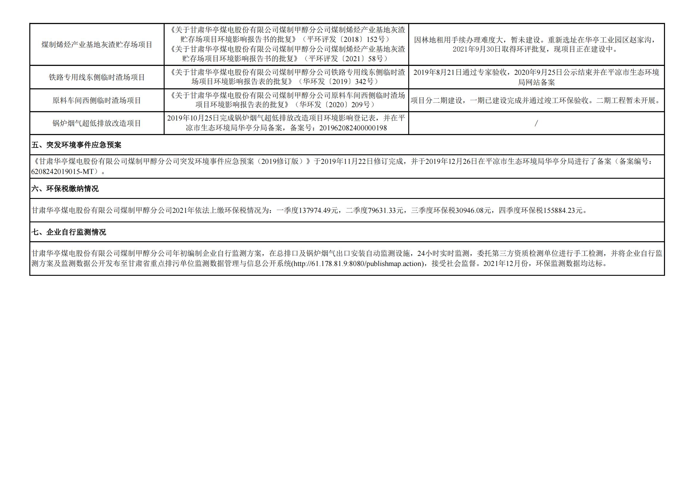 煤制甲醇分公司環(huán)境信息公開內(nèi)容(2021年12月)